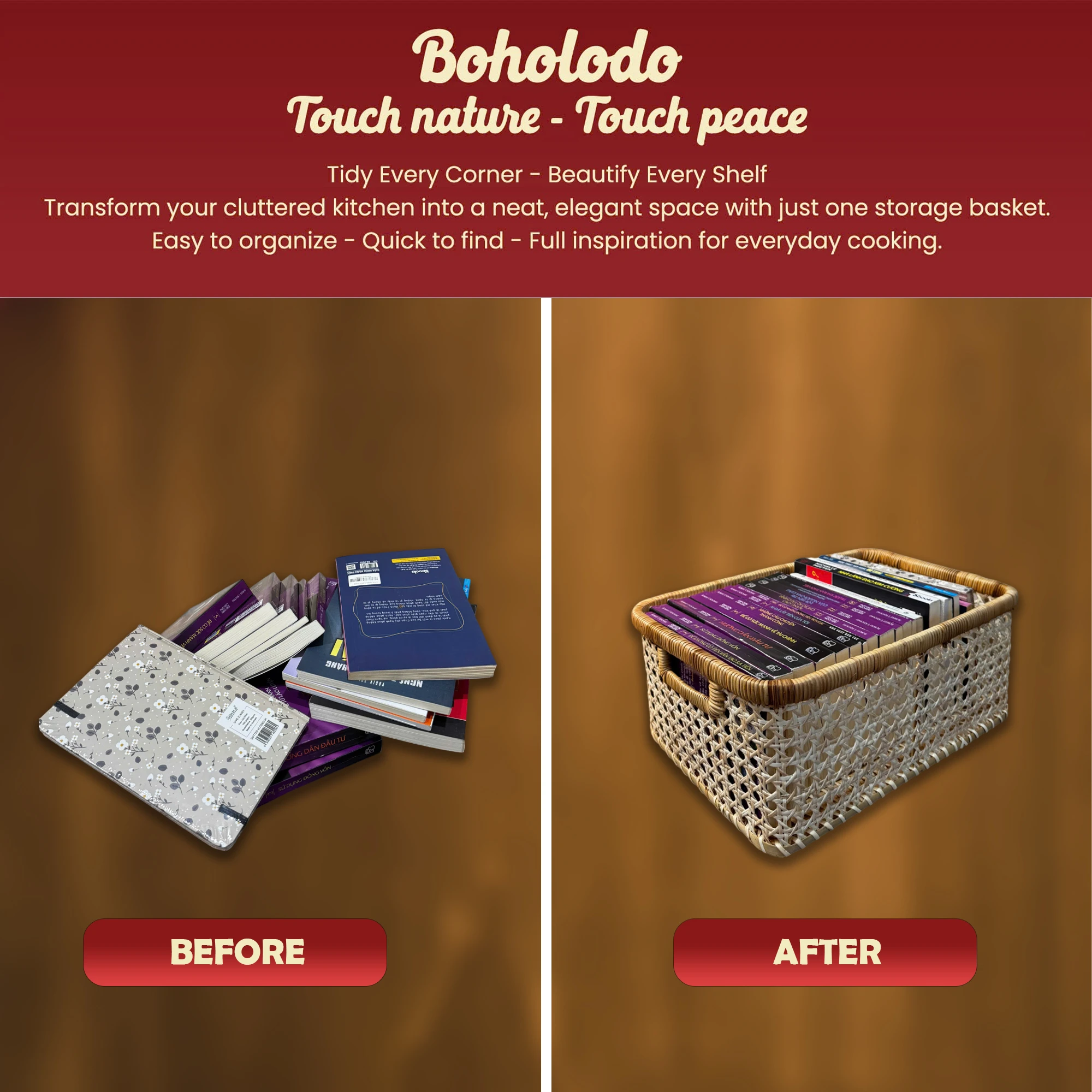 - A Perfect Match for Boho & Vintage Whether you're embracing the cozy charm of Rustic style, or the earthy textures of Boho-inspired homes, this woven storage basket blends effortlessly into any decor. Its handcrafted beauty makes it more than a wicker storage bin. Ideal as a wicker basket for shelf, a cube basket for storage shelves, or even a decor basket for entryway tables or bedrooms. It's perfect for everything from bathroom organization to living room blanket storage, bookshelf baskets. With its handwoven water hyacinth texture and soft tones, this wicker organizer elevates your space — the ultimate choice for anyone curating a farmhouse, vintage, or boho home.